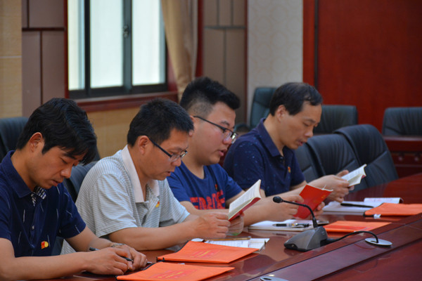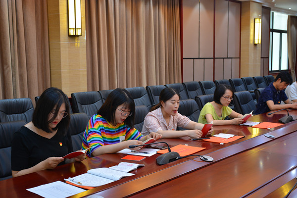 全体与会党员在顾辉书记的领读下共同朗诵《中国共产党章程》第43页第三十条内容。全体党员巩固了“党的基层组织”的内容。