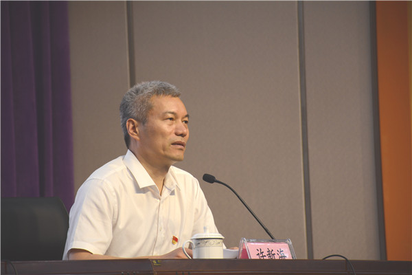 许新海作了题为《立足教育实际,狠抓党建工作,奋力开创教育体育系统党建工作新局面》的工作报告,从“看成绩,亮点纷呈”“看问题,短板明显”“看下半年,任务艰巨”三个方面,简要总结了全市教育体育系统上半年党建工作,精辟指出了存在问题,并对下半年党建工作的重点任务进行了总体部署。