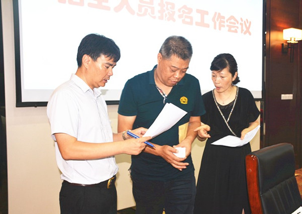 经过前期招生工作人员的共同努力,我校2019年的招生宣传、预约报名工作基本完成,为做好接下来的通知书发放和学生报名工作,7月1日上午7点30分,我校在A楼二楼阿里厅召开了招生人员报名工作会议。副校长茅一娟、全体招生工作人员、学工部全体成员参加了会议。 在会议上,副校长茅一娟主要对2019年录取通知书的发放和7月3日新生报名工作进行了指导,并对全体工作人员提出明确要求。 茅校长首先就前期的招生宣传、预约报名和平台录取工作进行了梳理和总结,重点对我校综合高中、大专、3+3、职业中专和单招5个类别的录取情况进行了介绍。对个别比较特殊的初中校毕业生的录取情况进行了通报,指出了接下来在录取通知书发放及报名工作中应该关注的注意点。 随后,茅校长重点对整个录取通知书的填写、发放和报名工作的流程进行了梳理,强调了每一个环节的细节。在讲解报名工作流程时,茅校长结合各类表格强调了各标注的含义和作用,对特别注意的项目进行了指导和反复强调。 接着,学工部范丽萍副主任对招生老师提出来的疑问进行了现场解答,同时将招生平台的数据更新情况详细地告知各位招生老师。 指导工作结束后,所有招生老师现场填写录取通知书,张贴提醒标签,领取军训服装卡和生活用品卡。会议结束后,各招生人员随即赴各初中学校发放录取通知书,整个发放工作于7月2日全部完成。 6月30日,学工部全体工作人员根据录取平数据进行了各项材料的准备:根据各学校录取情况完成详细数据分割,完成各类录取通知书的分放;根据各初中校录取情况完成军训服装卡的编号和分块:整个准备工作的完成为招生会议的召开和录取报名工作做好了服务准备。 7月3日,我校2019级新生将来校报名,相信在校长室的正确领导下,在各部门的全力配合和全体招生工作人员的努力下,我校2019年的招生工作会画下一个圆满的句号。(黄 娟)