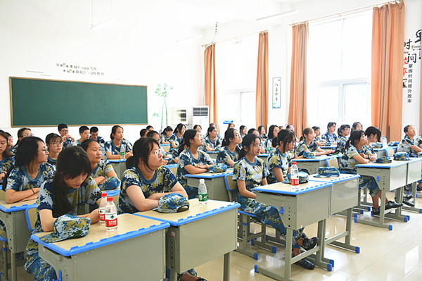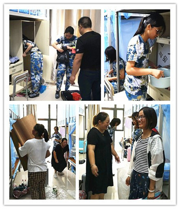 随后,学生们在班主任、志愿者的带领下,顺利来到自己的宿舍,认领床铺并迅速完成宿舍的整理。接着,学生们换好了军训服装在教室集合,班主任就接下来的军训活动作了具体的说明,并就常规、宿舍内务等方面提出了明确的要求。