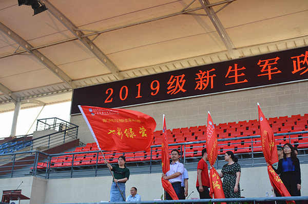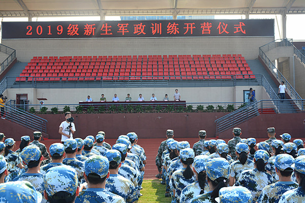 7月15日下午4点,经贸系2019级全体新生参加了海专“军政训练开营仪式”,升国旗唱奏国歌、观看VCR、领导讲话、教官和新生代表发言、授营旗、教官队列表演及学生宣誓等,在内容丰富的开营仪式中,海专高一新生的暑期军政训练准时拉开了帷幕。经贸的莘莘学子迎来了海专学习的第一课--军训。