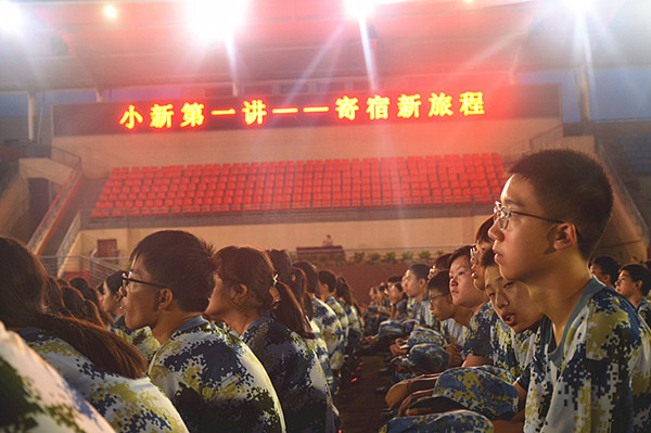 晚上七点,新生们在操场观看了学校宣传片《先锋》,同学们无限专注,仿佛看到了在美丽海专里昂首阔步的自己,充满了期待和自信;小新第一讲“寄宿新里程”给同学们展示了全新的海专寄宿生活,同时也规范了他们的内务要求,为良好的学习生涯奠定了坚实的基础;红歌训练是同学们一天中最放松的时刻!大家可是扯开了嗓子,真可谓“愉快的歌声漫天飞”!晚上休息前的最后一个任务是宿舍整理内务,大家互帮互助,把握好每一个细节,高标准的完成了内务整理。