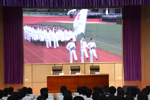 会上,同学们首先观看了信息系2018级学生参加南通市职业学校军训汇报展演的视频,整齐划一的步伐,嘹亮的军歌无不给在座的新生带来了震撼。