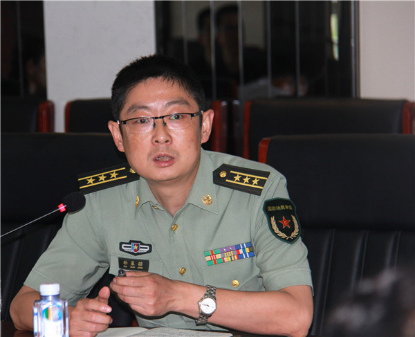 孙泉疆代表承训方发言,他谈了日前为我校承训的感受,对承训官兵提出三点要求:尽心、尽职、尽力,训练中做到张弛有度、宽严相济、教管结合。