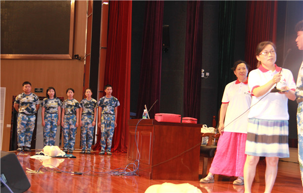 会后,与会人员现场观摩了我校的军训项目,正在进行的急救知识培训及队列训练给大家留下深刻印象。(黄蓉蓉)