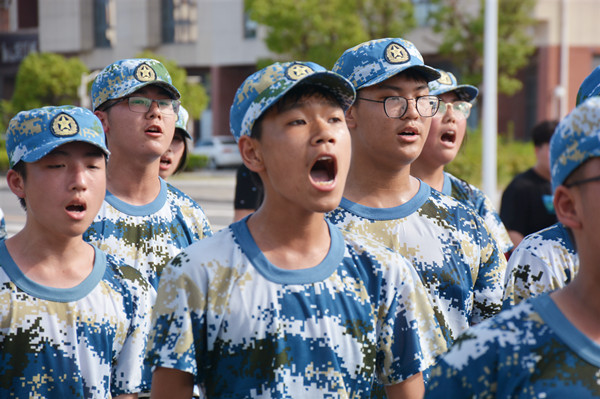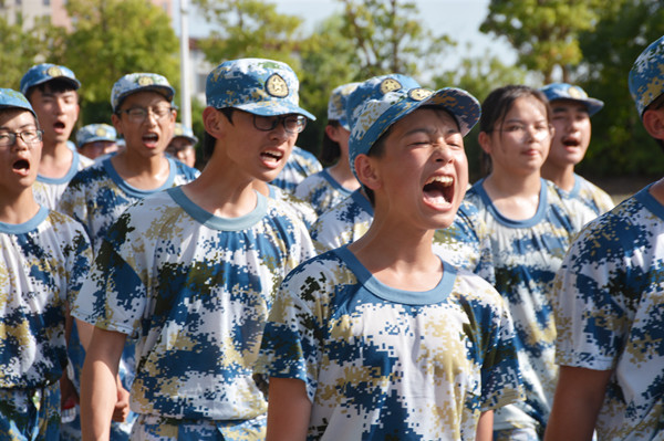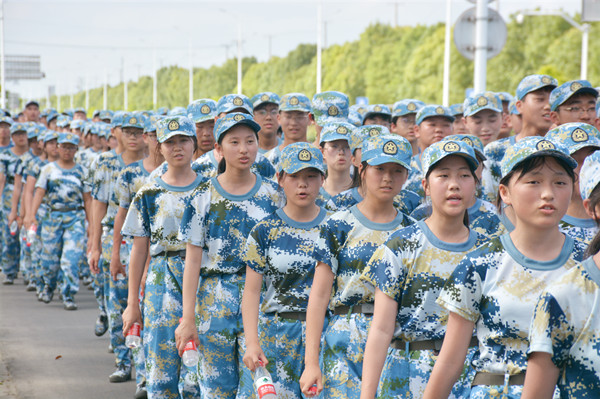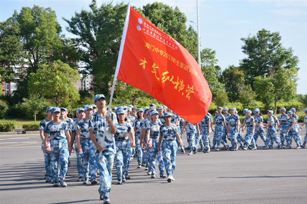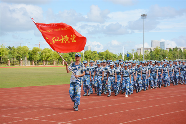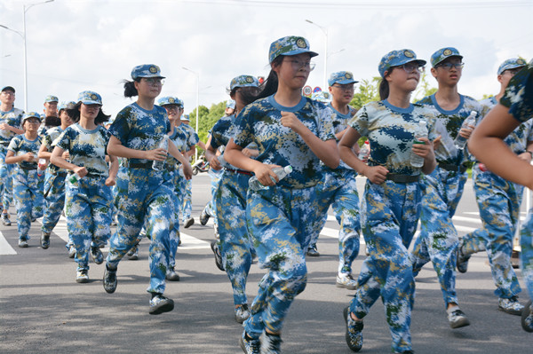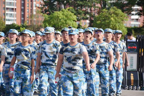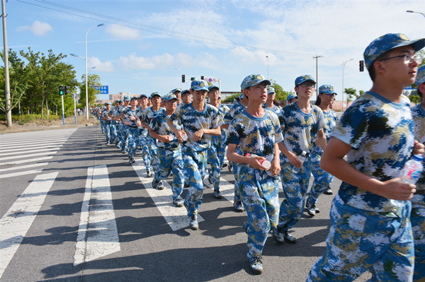 “才气纵横营”的鲜红大旗在风中高高飘扬,我们以连为单位,形成9个拉练方阵,沿着黄浦江路,一路向南行进。户外马路上温度高达40℃以上,天空的云团游走不停,骄阳炙烤着大地,幸好有风吹拂着我们。迈着矫健的步伐,唱着嘹亮的军歌,我们朝着胜利的方向不断前行。但是拉练进行到一半,我们才发现一切并没有想象那么顺利,一开始觉得没什么,可越往后走,脚就越疼,每迈一步都像是脚踩在碎石子上,汗水浸透了衣衫一会又被太阳晒干,衣服黏在身上简直难以忍受。但没有人轻言放弃,没有人停下脚步,大家彼此扶持,互相鼓励,咬牙坚持,最终从学校南大门进入回到训练场地。