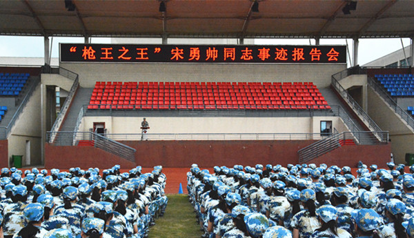 “只有经历地狱般地磨炼,才能练出创造天堂的力量;只有流过血的手指,才能探出世间的绝唱。”这是诗人泰戈尔对“磨炼”的诠释。如果这是文字的解释,那么教官宋勇帅12年从军历程就是同学们身边最为生动表达。 7月16日下午4点,全体新生在南操场听取了“枪王之王”宋勇帅同志的事迹报告会,与“王者”面对面交流,在听取报告的过程中找到了“王者”之所以为王的答案。 报告会由学生工作部副主任陆晓曦主持。整个报告会分两个议程:第一个议程,学生观看视频《枪王之王——宋勇帅》;第二个议程,宋勇帅教官做事迹报告。 视频《枪王之王——宋勇帅》讲述了宋勇帅作为狙击师带兵训练的艰苦历程,其训练的艰辛、成绩的斐然都让在座的同学羡慕不已;而宋教官在困难面前的勇毅坚持、选择面前的无私付出、“大家”面前的义无反顾更让同学们钦佩不已。 视频再现了一个“枪王”诞生的不易,接下来的现身讲述则给我们塑造了一个真实的“追梦人”。宋教官用自己的军旅故事告诉大家,成就任何一个成功都需要坚定不移地怀揣梦想和艰苦卓绝的执着追求。宋教官用自己的言传身教让同学们懂得了“不是因为有希望才去奋斗,而是因为奋斗了才有希望”的人生道理。 “枪王之王”是怎么炼成的?宋勇帅教官给了我们答案——梦想、刻苦、坚持。这场报告会让同学们醍醐灌顶:找准自己的定位,在后面的几年中学会、学好、学精专业,只要够刻苦,能坚持,就一定能成为各个专业中的王者。(黄 娟)