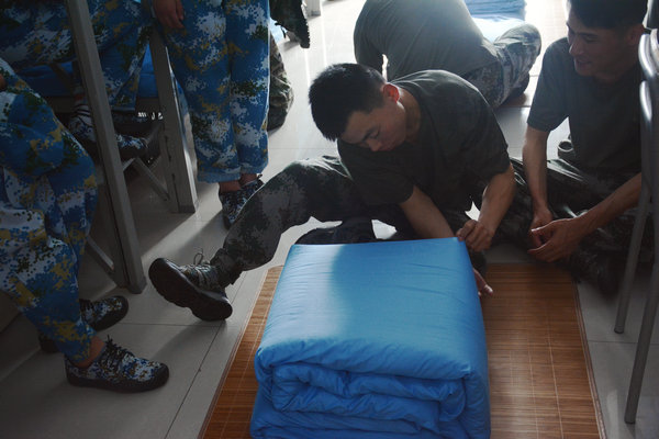 军训的内务整理,有助于培养新生们的自理能力和独立生活能力,更有助于他们养成良好的行为习惯和认真的办事态度,促进他们的身心健康发展,必将成为军训中浓墨重彩的一笔。(范小培)