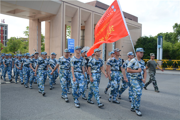 7月18日,经过3天的军训,2019级新生迎来了军训拉练。拉练是军训的1个重要训练科目,旨在磨炼学生刚毅顽强的好品质,增强团队凝聚力。下午三点半,全体参加拉练的新生按军训团各营、连建制确定行军序列,各连教官、班主任与连队同行,依次由学校东大门出发行进,途径黄浦江路、香港路、东江路、苏州路最后经学校南大门返回,历时1个多小时,顺利完成了全程约3公里的行军拉练任务。