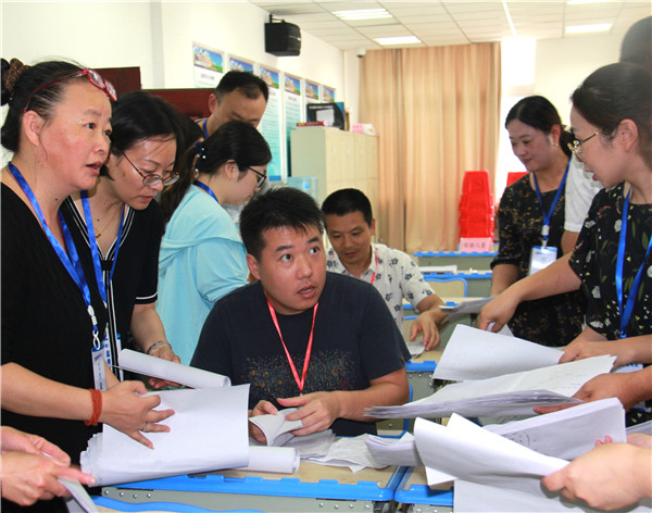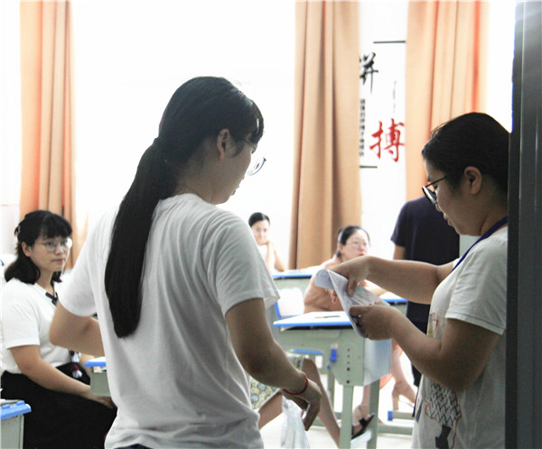 8月8日,海门新教师招考笔试在我校举行,本次招考共计招聘岗位小学语文、初中物理、高中数学等岗位54个,979人参考,学校共设考场33个,考试时间为半天,经过笔试筛选,面试将于12日举行。 为了保证此次笔试工作万无一失,我校高度重视,严密组织,8月4日召开了协调会,对各项准备工作进行安排部署,在材料准备、考场安排、设备调试、试卷接送、宣传接待、后勤保障等各个环节上做到精心安排、严格把关,详细任务分解,确保责任到人;8月7日召开考务培训会,对考试流程规则等进行指导强调,要求大家统一思想,明确责任,熟悉流程,严格按照程序指令操作,自觉遵守监考纪律,并热情做好服务考生工作。 考试过程中,全体工作人员认真履职、严守纪律,严格按照程序严谨、规范、有序地组织考试,整个考试 安全、平稳、顺利,确保了此次教师招聘考试笔试工作公开、公平、公正。 考试期间,海门教体局党组副书记、副局长季立新,市委教育工作领导小组秘书科科长吴爱建,海门教体局人事与师资科科长陆瑞杰全程督考,海门教体局纪检组组长俞辉、海门市人社局事业科科长黄爱华等来校巡视,对我校的考试组织十分满意。(黄蓉蓉)