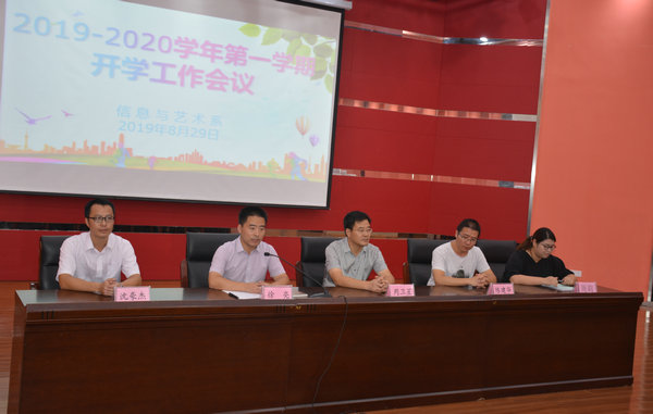 8月29日上午8:30,信息系在H楼报告厅召开了2019-2020学年第一学期开学工作会议。分管副校长周卫星、系部主任徐亮、副主任陈建华、副主任沈豪杰、主任助理周莉以及系部全体教师参加了此次会议。