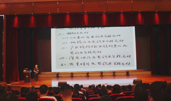 8月27日上午,是“创新杯”教师发展大会的第二天,我校邀请了江苏理工学院职教研究院院长庄西真博士为全校教师进行暑期培训,謇公湖科教大会堂座无虚席。本场讲座由科研工作部主任杨一丹主持。 庄西真紧紧围绕“新时代新要求,职业学校怎么办?”这一主题,他以三个问题“职业学校应该干什么?”“能够干什么?”“实际干了什么?”引发大家的思考。他结合《国家职业改革实施方案》及中等职业学校现状,针对人口变化、城镇化、产业结构变化和就业结构变化、深度工业化及质量时代变迁等实际情况,具体提出职业学校的应对措施。他认为职业教育应服务国家、强化技能、提升能力、严格管理,并按照“四有”和“六要”,多措并举打造“双师型”教师队伍,培养更多高素质高技能的人才。庄教授语言幽默风趣,其“接地气”的观点和看法,让与会者受益匪浅,现场笑声掌声不断,大家均有所收获、有所触动、有所反思。 专家讲座为我们指引了前行的方向,为我们今后的教学改革注入了新理念和新方法,职业教育的道路将会越走越宽!(文:沈晶晶图:曹卫菊)