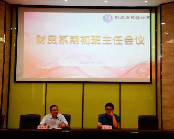 良好的开端是成功的一半。2019年8月29日上午9:30,财贸系在名匠报告厅召开期初全体班主任会议,系部主任王飞、副主任施黎华参加了本次会议,会议由施黎华主持。