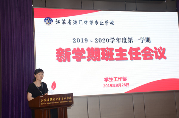 8月28日下午2点,我校新学期第一次班主任会议在B1楼文苑报告厅如期召开。副校长茅一娟、学生工部全体工作人员、六大系部德育主任及全体班主任参加了会议。会议主要对本学期德育工作重点进行说明,同时对开学工作进行布置。 学工部主任张海华主持会议,会议有三个议程: 第一个议程,明确学期德育工作总目标,理清学生工作总思路。学工部主任张海华首先对本学期重大的德育工作进行梳理,充分明确了新学期学生工作的总体思路和工作目标。随后从班主任层面将学生报到前后的具体工作进行细化解读,重点指出缴费工作应强调规范,学生常规需讲究细节、班级管理力求实效。 第二个议程,解读宿舍管理新要求,确保学生常规高质量。学工部副主任李建英就宿舍管理和学生常规检查两个方面进行了分条列项的讲解。李主任围绕“安全”这个关键词对宿舍内务、纪律及常规管理等11条相关要求进行了详细说明。李主任强调,宿舍管理的重中之重是安全,只有为学生营造安全的生活环境,健康和谐的学校生活才得以体现。 第三个议程,高站位进行学生管理,细节处追求品牌效应。副校长茅一娟以“德育工作重点是什么”“开学应该准备些什么”两个问题导入,指出了德育工作是个浸润渐染的过程,班主任要以优秀的专业素养,在德育活动中实现育人目标。茅校长强调:全体德育人要全面守住一个底线,将“安全”时刻放在心上;要坚决维护一个大局,将“规范”一丝不苟地体现在每一个工作细节中;要扎实开展一种教育,将“养成教育”贯穿于工作的方方面面;要努力形成一种品牌,在班主任工作特色中体现个性和创新。最后茅校长分别从新老班班主任两个层面出发,对18项开学准备工作进行了指导,并对“一通知三检查”进行说明。 “一路征程一路歌,高原之上再出征”,在学校新学期工作思路的引领下,全体德育人将始终坚持“不忘初心,牢记使命”,将我校德育工作推上一个新台阶。(黄 娟)