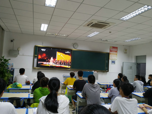 晚上8:00在班主任的组织管理下,各班按时观看了CCTV-1播出的以“五星红旗,我为你自豪”为主题的2019年《开学第一课》。