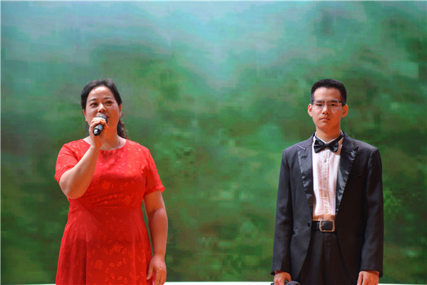 参加暑期“海门达人秀”的电信系张驰昊同学,跟他母亲依次登台,以《天边》、《春天中国》演绎心中的美好追求和爱国之情。