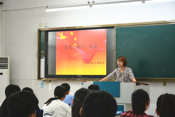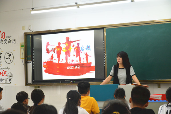 在祖国70岁生日到来之际,各班级纷纷从“爱国”的主题出发,对学生进行爱国主义教育。各班主任精心制作精美的PPT,用画面、用齐唱爱国歌曲等形式激发学生的爱国热情。“奋斗”是一个永恒的主题,班主任们用各种励志故事激励学生,通过介绍一个个平凡人物成才成长的历程,让学生从中获得了前进的力量。“起航”是班主任们对学生的期望。在新学期的第一堂班会课上,班主任们为学生点燃了一盏指路灯,对学生提出了新学期具体的要求,给学生指明了前进的方向。