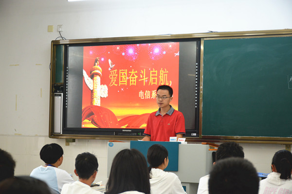火红的颜色张扬爱国的力量,跳动的脉搏孕育奋斗的方向,起航的号角在此刻再次吹响。9月2日上午第一节课,电信人的第一次班会课“爱国 奋斗 起航”在每一间教室里激情点燃。