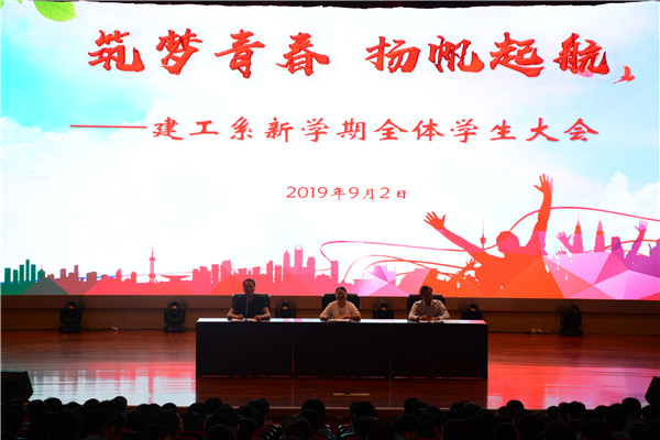 新学期,新气象,新目标。为进一步增强学生的纪律意识,规范学生的行为习惯。9月2日下午15:00,建工系在謇公湖科教大会堂召开了新学期第一次全体学生大会。建工系朱敏敏主任、张永辉副主任和邹熊冰副主任,以及全体学生和班主任参加了本次会议。