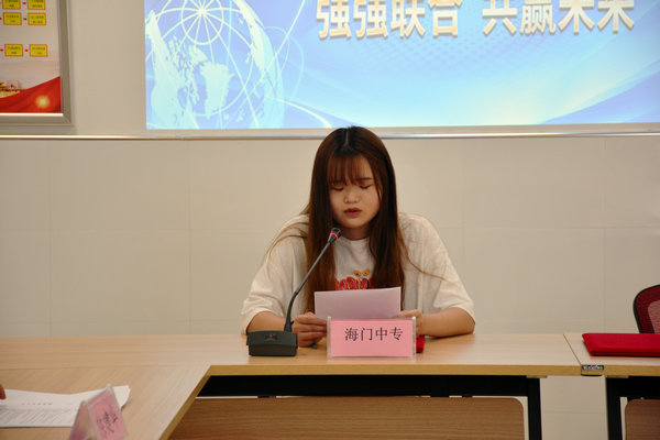 第三项议程由学生代表钱佳燕发言。她首先感谢了学校和中国移动公司给予他们此次宝贵的实习机会。接着她代表全体跟岗实习学生做出了承诺,承诺在即将到来的实习工作中,牢记安全意识、纪律意识、学习意识和团队意识。
