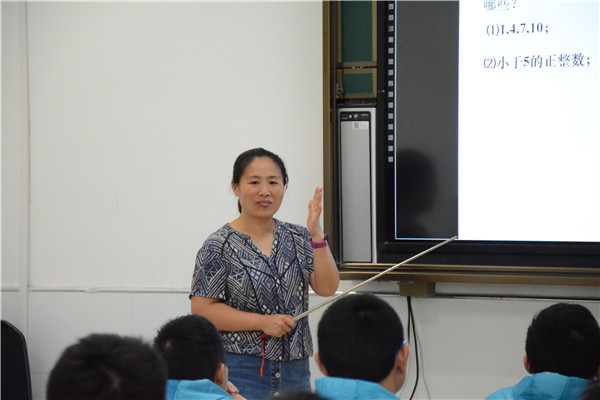 课堂开始,施老师用生活中的实例拉开了《集合的表示法》这节课的序幕。她在教学中充分利用学生的好奇心一步一步把学生带入数学的殿堂,通过和学生一起探究,逐步挖掘问题,由浅入深,层层递进,总结推广,最后得出问题的本质属性。她的讲解简明易懂,以简驭繁,让学生在自我摸索中得出概念,在同学互相补充中完善知识点。