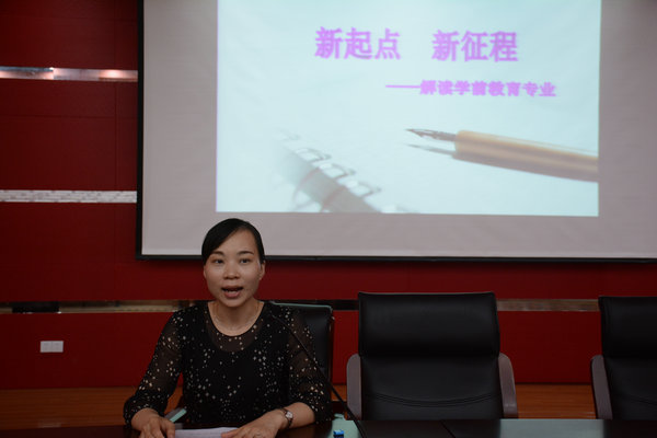 本次活动由学前教育专业曹怡老师主持。曹老师主要为新同学们介绍了学前教育专业的专业基本概况、学习内容以及大概的就业方向。考虑到新生们对专业存在的诸多疑惑,曹老师在活动中还安排了答疑环节。面对同学们对自身条件不自信的问题以及有关备考普通话等级考试等问题,曹老师都耐心解答。