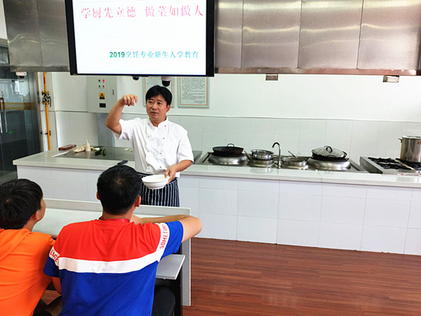 周晟主任以“学厨先立德,做菜如做人”为题切入,为新生们介绍了烹饪营养系的办学历史、实训场地、参加技能大赛的情况、实习单位、优秀毕业生及升学的相关情况,采用现场教学方式为同学们进行了专业展示。