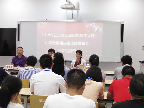 9月5日下午15:00,2019年江苏省职业院校教学大赛中职数学组决赛成绩发布会,在常熟中等专业学校行政底楼会议室召开。根据专家组组长宣布的成绩排名,以财贸系崔力老师为首的参赛团队摘得省教学大赛银牌。