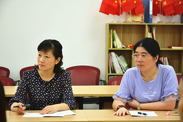 课后,茅校长肯定了两位教师的课堂教学优势,并就专业提升和课堂成效与两位教师交换了意见。