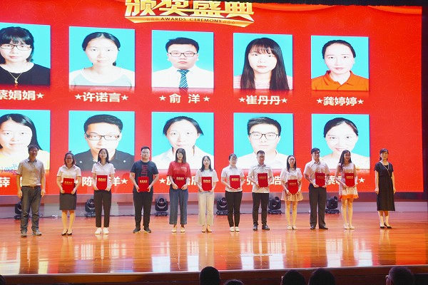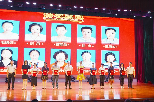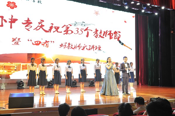 又是一个金秋,又到了收获的季节! 2019年9月10日下午,海门中专全体教职工在謇公湖科教大会堂举行庆祝第三十五个教师节暨“四有”好教师大讲坛活动,喜迎自己的节日。 在共和国七十华诞到来前夕,今年的教师节显得格外喜庆。活动在雄壮的国歌声中拉开帷幕。嘹亮的国歌声响彻整个礼堂,表达了全体教师对祖国的热爱,对教育事业的忠诚。 诗的礼赞 教师们落座,来自机电系的钱钰莹等11位同学献上了诗朗诵《当每一个教师节来临的时候》。同学们用原创的作品,深情的语言展现了我校教师无私奉献、潜心育人、甘当铺路石的精神,让在座的每一位教师产生了共鸣。 光阴的故事 俗话说:十年育树,百年育人。教育是一个漫长的过程,需要花费一辈子的心血。在《光阴的故事》里,一张张老照片带我们回到过往,回顾那些老教师的青春岁月。照片中的老教师都是在1985年9月10日前参加工作,完整地经历过35个教师节的教育前辈。看着照片中的他们由青丝到白发,我们重新认识了这些身边的老教师,看到了他们对教育的坚守和付出。一代代海专人正是以这样的方式,薪火相传,育人不倦。 而对曾为群、黄苏红两位老师的访谈—《即将退休的我》,则向我们展示两位老教师的职业生涯,表达了两位教师对学校,对教育的热爱。虽然马上就要退休,但两位老师都表示只要学校需要,他们会立刻回到学校。两位老教师的话,感动了所有人,对年轻教师更是一种激励。 榜样的力量 有种优秀是默默无闻的发热,就像春蚕,默默编织,无声无息。当我们观看了《职教360》特别节目:“伴你高飞”,我们深深被财贸系高三服装教师这个群体的奉献精神所感动。他们是我们学习的榜样! 表彰优秀 校党委书记宋健宣读了获学校、教育体育局和市委市政府表彰的优秀教师及团队名单。 我校共有61位优秀教职员工受到学校的表彰,22位教师受到市教育体育局表彰,14位教师受到市委市政府表彰。 之后举行的颁奖仪式,学校领导分别为受奖教师颁发奖状以示鼓励。 徐忠校长作了以感谢、感悟、敢当为关键词的讲话。徐忠向为学校发展做出无私奉献的教师表示了感谢;对教育的意义,教师的价值谈了自己的感悟;并要求全体教师继续发扬肯吃苦,肯付出的精神,敢于担当,在教育的道路上不断前进。 师生情谊 学生眼中的老师是怎样的?老师眼中的学生又是怎样的?来自建工系的张凯林和财贸系的崔慧琳两位同学讲述了他们眼中那严厉又可亲的老师;而来自电信系的俞文娟老师也讲述了她眼中的学生。在老师的眼中没有笨小孩,在老师的眼中每一个学生都有自己的优点。他们感人的叙述,诠释了教育的真意,谱写了师生的情谊。 最后在信息系学生小合唱《老师,我爱您!》的歌声中,本次庆祝活动落下帷幕!