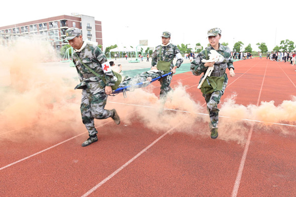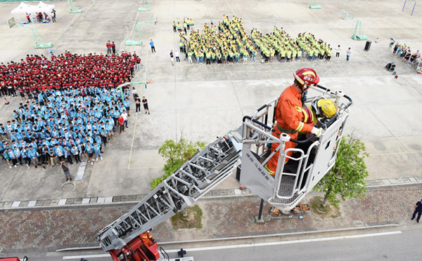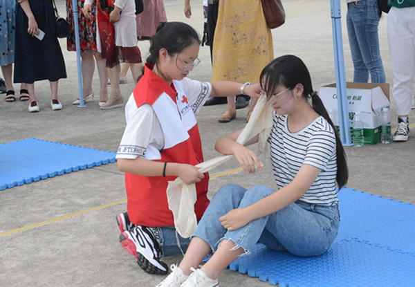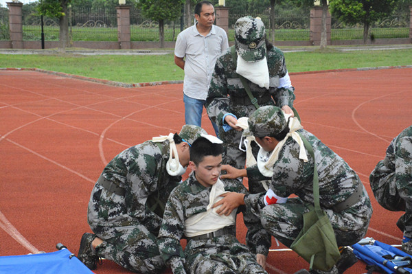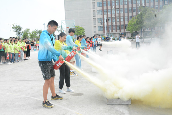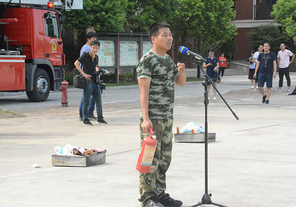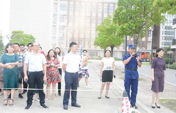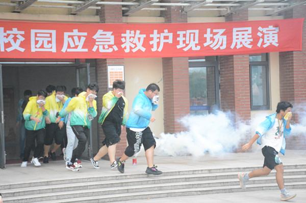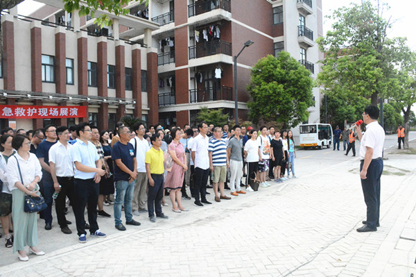 校园应急救护,护航你我生命。在第20个“世界急救日”来临之际,2019年海门市校园应急救护现场展演于9月11日下午2点30分在我校举行。市教育体育局副局长曹惠忠、安全办主任陈雪标,副校长茅一娟以及全市中小学及幼儿园的150余名负责校园安全的校长园长观摩了展演。 11日下午2点10分,我校2号楼、3号楼和5号学生公寓楼完成准备工作。2点30分,总指挥张海华发出指令,报警声响起,宿舍门口烟雾升腾,宿舍消防逃生疏散演练拉开帷幕。各公寓楼的学生用湿毛巾捂住口鼻,猫腰低姿,沿着规定路线快速疏散至篮球场,各系部德育主任组织各班进行人员清点并向总指挥报告。 2点45分,市消防大队对留在5楼未及时疏散的学生进行云梯高空救援。2点53分,随着2名学生安全落地,宿舍逃生疏散演练结束。 3点,市消防大队孙以军队长组织学生进行了灭火演练。孙队长首先进行了灭火器的使用操作的培训,让学生牢记“去、拔、抬、压”四个标准动作。 3点10分,安保组完成火源准备,在孙队指导下,40名师生代表进行了灭火操作演练。在演练过程中,孙队对演练安全进行反复强调,并及时矫正错误动作,确保整个灭火演练的安全、顺利、有效。 3点30分,市红字会教员范玉莲组织四组学生进行紧急救护演练。演练的主要项目是现场心肺复苏和创伤急救,专业教员进行现场讲解,学生根据讲解将规范动作进行展示。 3点45分,三组战伤救护组以比赛的形式向师生展示了战伤救护的整个过程。指挥员张海华讲解了战伤救护的基本常识,展示组的学生展示了止血、包扎、固定和搬运这四个环节。 展演活动结束后,市教育体育局副局长曹惠忠对活动进行了总结。曹局长从本次展演的背景出发,强调了学校安全的重要意义,并对全体负责安全的校长和园长们提出了要求。他指出,负责校园安全,需要“有心、细心、恒心、狠心”,要将安全检查日常化、细节化,要“留”于心,不能“流”于形,要将校园安全放在重要位置,用战斗精神和战斗能力坚决守住安全底线。 本次展演活动由海门市红十字会、海门市教育体育局联合主办,海门中专承办。学生通过宿舍消防应急疏散、应急救护及战伤救护等演练,掌握应急逃生的正确方法,学会各种急救措施,掌握战伤救护技能。(黄 娟)