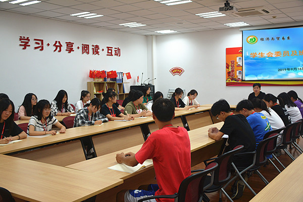 周晟主任还对学生会委员及班长提出了三点要求:1.要主动实践,亲力亲为;2.要积极锻炼自己的工作能力;3.要学会承担责任,提高自己的工作技巧。最后,周晟主任要求全体学生会委员和班长做任何事情都要团结一心,在新的学期引领同学们共同进步,为我们经贸勇创佳绩!