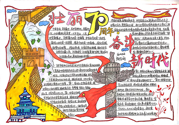 为隆重庆祝祖国70华诞,大力弘扬以爱国主义为核心的伟大民族精神,厚植学生的爱国主义情怀,结合学校学工部主题教育系列活动的精神,9月上旬,经贸系积极开展了“壮丽70年,奋斗新时代”书画、手抄报作品评比活动。
