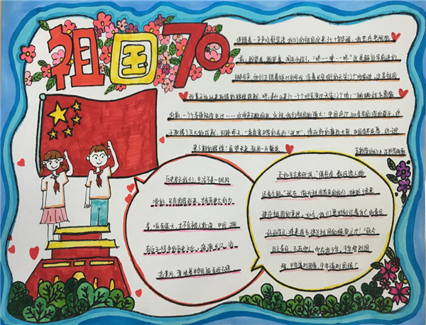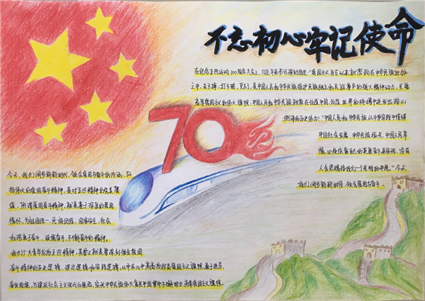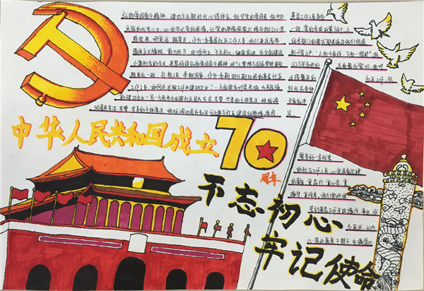 此次新中国成立70周年手抄报大赛,积极响应了庆祝新中国70华诞的号召,展现了我校学生的精神风采,进一步激发了广大青年学生的爱国主义情感,增强了广大青年学生的爱国意识,使广大青年学生受到了一次良好的爱国主义教育。(王益锋)