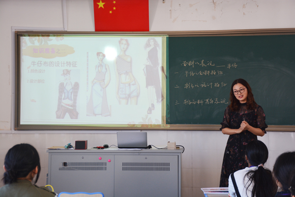 9月19日上午第二节课,服装组朱育梅老师在17YZ07班开设了一堂题为《牛仔面料的绘画设计表现》的校级公开课。系部朱娟副主任和服装组教师及部分无课老师参与了听课评课交流活动。