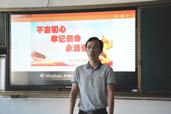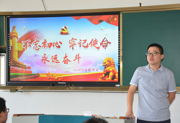 本次班会分为视频展示、专题学习和畅谈心声三个环节。班会伊始,班主任通过播放有关“不忘初心、牢记使命”内容的视频引入主题。随后,以PPT的形式学习习近平新时代中国特色社会主义思想,加深同学们的理解,紧接着,由学生代表上台讲述他们对于“初心”的理解和作为一名新时代青年的心声,使同学们对主题有了更加直观的了解。同学们纷纷表示实现中华民族伟大复兴,当代学生责无旁贷,他们会更加严格要求自己,时刻牢记使命,勇于担当,为实现中国梦奉献力量。