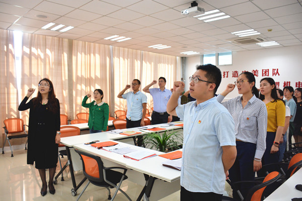 第二项议程,重温入党誓词。支部书记吴樱樱同志组织完成党费缴纳培训、话感言、过政治生日等规定动作后,带领全体党员一起重温了入党誓词。“我志愿加入中国共产党…….随时准备为党和人民牺牲一切,永不叛党。”铿锵恢宏的誓词,强烈震撼着在场的每一位党员,一字一句,神圣而豪迈,体现党员同志们对中国共产党的无限忠诚。
