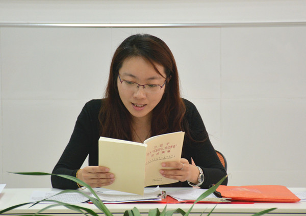 第三项议程,集中学习。吴书记带领大家共同学习“不忘初心、牢记使命”主题教育的相关文件精神以及学习习近平同志关于“不忘初心、牢记使命”的重要论述。她从聚焦主题主线、突出重点对象、抓实基层支部,强化组织领导等方面解读了此次主题教育的实施方案,希望我们党员教师要牢记自己的教育初心与使命,始终把教书育人作为自己的人生目标,为祖国培养更多的合格型人才。