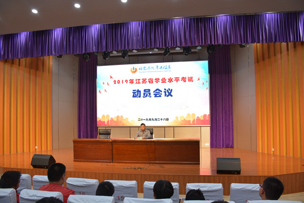 9月28日上午9:20,机电系组织2017级中职学生在文苑楼报告厅召开2019年江苏省学业水平考试动员会,机电系副主任黄引主持会议并发表讲话。