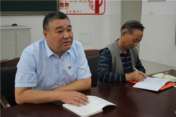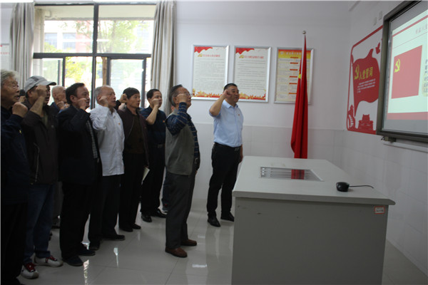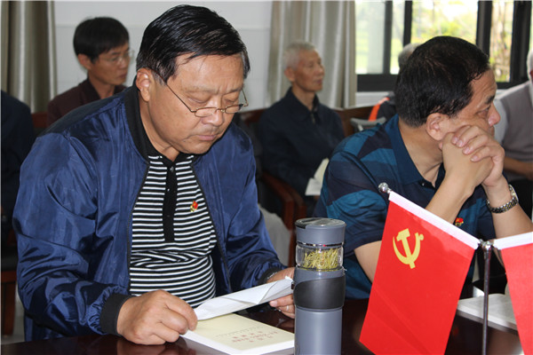 2019年10月7日上午,离退休党支部全体党员集聚海门中专E楼107会议室举行习近平新时代中国特色社会主义思想学习大会,会议由蔡秀松书记主持。 作为离退休支部“传承红色基因,争当开路先锋”主题党日活动的一项重要内容,全体党员在蔡秀松书记的带领下,一起学习了《习近平关于“不忘初心、牢记使命”论述摘编》第一篇章:中国共产党人的初心和使命,就是为中国人民谋幸福,为中华民族谋复兴。由蔡秀松同志领学,原原本本读原著、学原文、悟原理,持续深化解放思想。每个离退休党员都学得非常认真,使学习过程真正成为了统一思想、解放思想的过程,切实增强“四个意识”,坚定“四个自信”,做到“两个维护”。会议要求,会后党员同志还要利用时间进行自主学习《摘编》、《纲要》,深入锤炼坚强党性,确保思想政治受到一次神圣洗礼。  随后,校党委书记宋健同志为离退休党员上了一堂《不忘初心、老有所为》专题党课。宋健解读了全国第二批开展“不忘初心、牢记使命”主题教育的重大意义,并结合支部实际对主题教育总要求“守初心、担使命、找差距、抓落实”进行了深度挖掘和阐述。希望老同志们不忘初心,老有所为。宋健对支部活动、党费缴纳等方面也提出要求,并建议老党员们在退休生活中保持党性觉悟、多学习关心国家大事,多为社会发展做贡献,共同去构筑美好的新时代。 最后,由蔡秀松书记领誓,全体支部党员重温入党誓词。虽然大部分同志已经步履蹒跚,重温入党誓词时却激情澎湃、慷慨激昂。仿佛又重新回到了那激情燃烧的青春岁月…… 会后,老党员们主动有序缴纳了党费,彰显了海专老党员们一贯的政治品质和作风,我们坚信,老党员们的风范永远是海门中专的一份宝贵的精神财富。