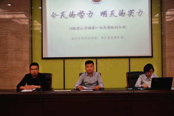会上,首先年级组长冯霞对本次月考进行了诊断性质量分析,从各班的文化课和专业课平均分、优秀率、及格率、低分率以及各专业的优生段学生的分布情况等数据进行了分析,对学生学习的优势和不足一一指出,对“专业先锋”同学给予表扬,并颁发了奖状,希望在场的每一位学生以“专业先锋”为榜样,不断进步。