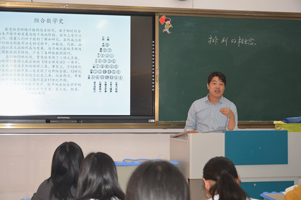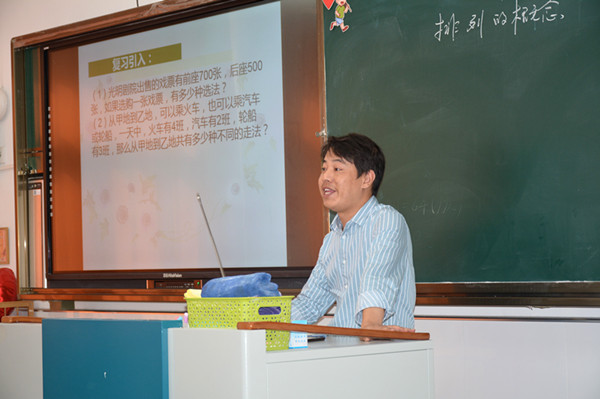 课堂上,王老师精心设计了课堂引入环节,由学生们熟悉的“西游记”引入排列问题,由易到难、不断拓展,既完成了教学目标所规定的知识内容,又使学生获得了更多的方法和能力。整堂课的脉络和主线清晰,根据教学内容和学生水平两个方面的实际情况设计教学方案,做到各知识点的合理编排、组合、衔接、过渡。同时王老师把关注学生放在第一位,时时处处以学生的课堂表现为自己下一步教学的出发点,根据学生的问题及时进行矫正和耐心的指导。在教学中,注重引导学生将获取的新知识纳入已有的知识体系中,真正懂得将本学科的知识与其它相关的学科的知识联系起来,解决相关问题,加深了学生对于知识的理解和融会贯通,进一步提高了学生应用知识的综合能力。