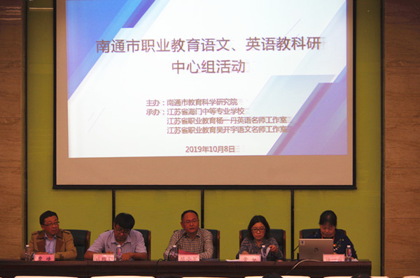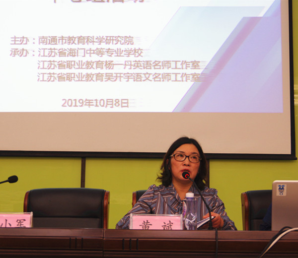 为贯彻落实新学期全市职教教科研工作会议精神,进一步加强我市职业教育语文、英语学科课堂教学改革研究,不断提升职业学校课堂教学质态,10月8日至9日,南通市教育科学研究院在海门中专举办了为期两天的南通市职业教育语文、英语学科主题教研活动。 市职业教育语文、英语教科研中心组成员,省职业教育吴开宇原味语文名师工作室、省职业教育杨一丹英语名师工作室全体成员,各职业学校语文、英语骨干教师代表共80余人参加活动。通过课改及学考讲座、专业阅读研讨、课堂教学观摩等形式就如何应对学测考试、如何贯彻“限时讲授、合作学习、踊跃展示”课堂教学改革十二字方针开展了深入探讨。 8日下午两点半,活动启动仪式在海门中专精匠报告厅举行。市教科院职教教研员钱维存、黄斌,海门中专副校长陈小军,南通市职业教育语文教科研中心组组长曹峰,南通市职业教育英语教科研中心组组长杨一丹主席台就座。