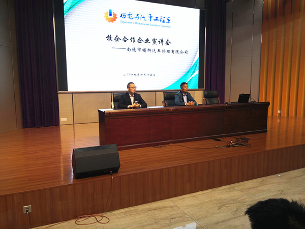 为进一步促进产教融合,10月15日上午8:30,机电系邀请南通市曙辉汽车修理有限公司董事长黄曙辉和姚经理来校开展企业文化宣讲活动。机电系副主任叶海伟主持活动,汽修专业学生听取了宣讲。
