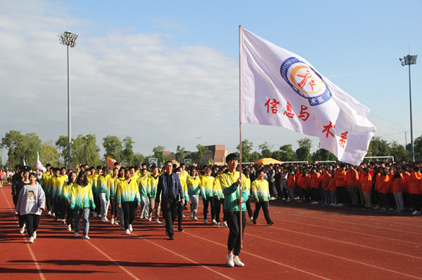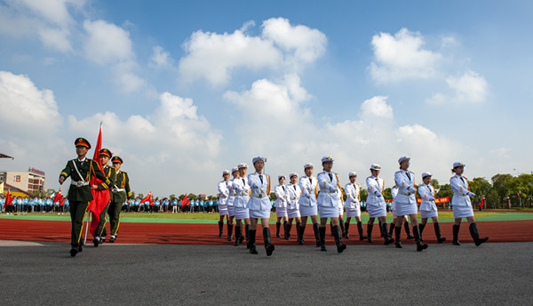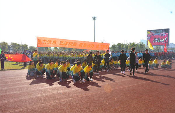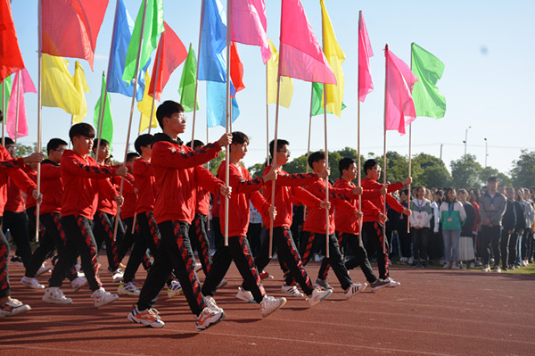 10月16日上午8点,海门中专第五届体育节暨第二十届田径运动会开幕式在校南操场举行。校长徐忠、校党委书记宋健、海门中专党委副书记、副校长周桂岐、海门中专副校长周卫星、茅一娟、陈小军、王小辉一同出席参加了开幕式。学生工作部张海华主持开幕式,全校7000多名师生用青春洋溢的开幕式拉开了体育节和运动会的生动序幕。 个性方阵,风采卓然。配以简明精彩的解说词,入场仪式由七个方阵的先后亮相开始。由国旗方阵、校旗方阵和彩旗方阵组成的前导队以严整的姿态展示着海门中专学子的整体风貌。随后而来的各个系部运动员方阵的展示各具特色:机电系的活力与阳刚、建工系的阳光与坚定、信息系的艺术与欢快、经贸系的青春与激情、财贸系的雅致与灵动、电信系的热情与坚毅,海门中专学子风采卓然。 国旗飘扬,激情澎湃。入场仪式结束后,全体师生肃立,在催人奋进的国歌声中,注视着五星红旗冉冉升起,全场气氛激动而澎湃。 师生宣誓,热情昂扬。财贸系19YZ01班蔡杨阳同学代表运动员进行宣誓。她结合“体育精神”的传承,讲述了拥有健康体魄的重要意义;以斗志昂扬的誓词做出了慎重的比赛承诺。裁判员代表陆晓笑老师明确裁判纪律,表达了对本届体育节和运动会的热情期待,并代表全体裁判立下“公正裁判,热情服务”的誓言,确保创造良好的比赛秩序,圆满完成裁判任务。 书记致辞,励志奋进。校党委书记宋健进行开幕式致辞。宋书记以“体育强国”理念助力体育节和运动会的成功举行,以“女排精神”勉励海专学子顽强拼搏,以“大生德育”思想精髓鼓舞海专学子健康成长,以“立德树人”育人之根本鼓励海专学子成人成才。宋书记希望全校师生以体育节为契机,以“理解、友谊、团结和公平竞争的奥林匹克精神”为指引,追求“更高、更快、更强”,造就“自信、自强、自尊”,开拓进取,求真务实,真抓实干,为开创海门中专更灿烂的明天奋斗。 铿锵发令,盛会开幕。8点30分,随着海门中专校长徐忠铿锵有力的号令声的响起,海门中专“健康阳光 拼搏向上”第五届体育节暨第二十届田径运动会正式开幕。 绿茵场上,体育盛会已经开宴,体育竞技已经上演。骄人成绩,我们来创造;精彩瞬间,我们来演绎……(黄 娟)