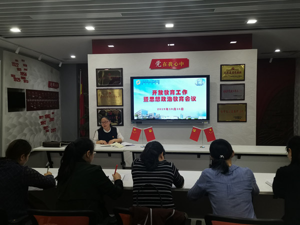 10月16日中午12点30分,继续教育部在A楼11楼党建文化活动室(砥砺厅)召开了19秋学期开放教育工作暨思想政治教育会议,会议由杨云主任主持,全体开放教育工作人员、班主任和任课老师参加了本次会议。