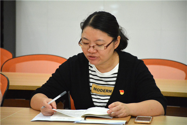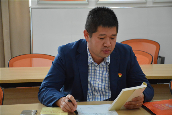 接着,党员代表张慧琴、孔佳宁、陆洪兵分别谈了自己的读书体会。张慧琴从《我和我的祖国》这部影片谈起,提到祖国日新月异的变化时感慨到,这是无数的先烈鲜血换来的,没有他们的抛头颅、洒热血,就没有我们今天的幸福生活;孔佳宁说,我为自己是中国人感到骄傲,为自己是一名共产党员而感到自豪。没有共产党就没有新中国,没有共产党就没有我们现在的幸福生活。在今后的工作中,一定会不忘初心、牢记使命,把自己的本职工作做好,做一名合格的共产党员;陆洪兵谈到祖国富强是我们的梦想,人民幸福是我们的向往。让我们扎扎实实,脚踏实地,用勤劳的双手托起伟大的“中国梦”。
