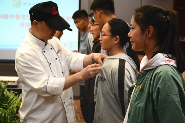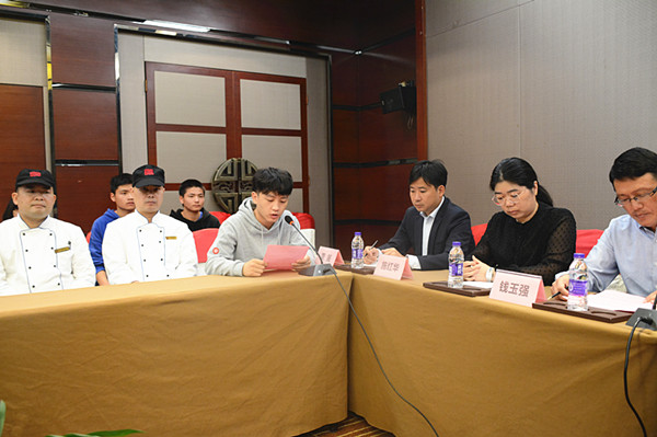 为了让更多烹饪专业的学生拥有实践操作的机会,享受进入五星级酒店工作带来的乐趣,10月18日上午,经贸系18MZ03中餐烹饪专业全体学生“现代学徒制”开班仪式在东恒盛大酒店会议室举行。参加本次开班仪式的有教学工作部副主任钱玉强,经贸系主任施红华、副主任陈忠平、周晟,酒店人力资源部经理陈焕智、师傅代表和全体烹饪专业学生。施红华主持开班仪式。