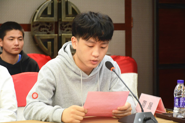 接着是18级学生代表黄宇杰同学发言。我们的学生信心满满,一字一句,从人生理想谈到就业需求;从家长的心愿说到师长的期盼;从学长的成果讲到自己的方向;侃侃而谈,代表在座所有学生立下了认真学习、努力工作的誓言。
