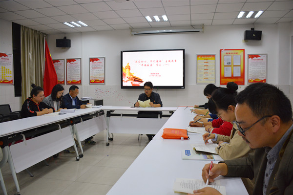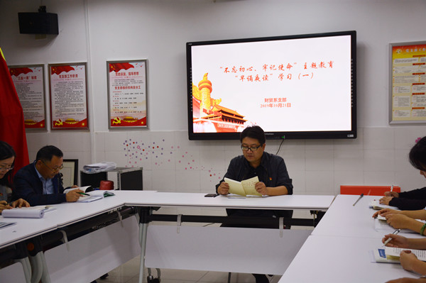 为深入学习贯彻习近平总书记在“不忘初心、牢记使命”主题教育工作会议上的重要讲话精神,根据学校“不忘初心、牢记使命”主题教育领导小组通知精神,财贸系党支部于10月21日晚上19:20,在D226党员活动室组织开展了“不忘初心、牢记使命”主题教育第一次“早诵夜读”学习活动。
